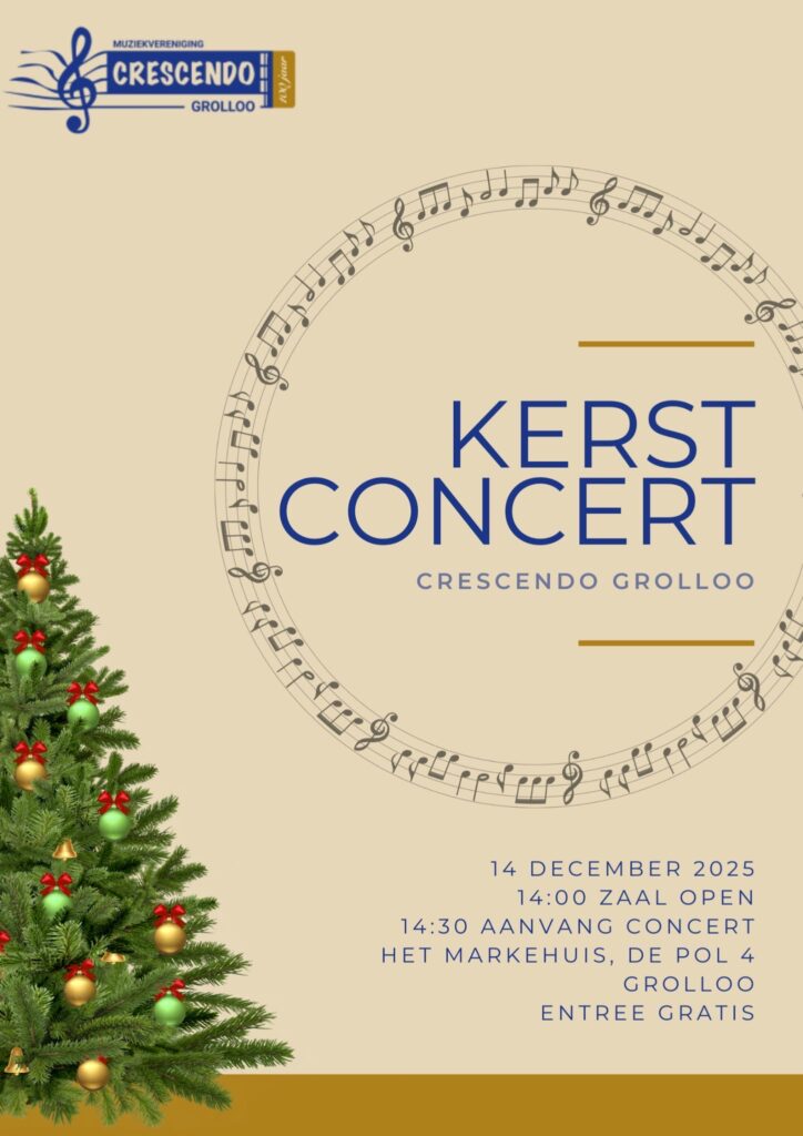 Na drie jaar afwezigheid — onder andere door de viering van het 100-jarig jubileum — pakt Crescendo Grolloo de vertrouwde traditie van het kerstconcert weer op. Het A-orkest speelt onder leiding van dirigent Egbert Stroeve een sfeervol programma met bekende kerstliederen als muzikale omlijsting van het kerstverhaal.