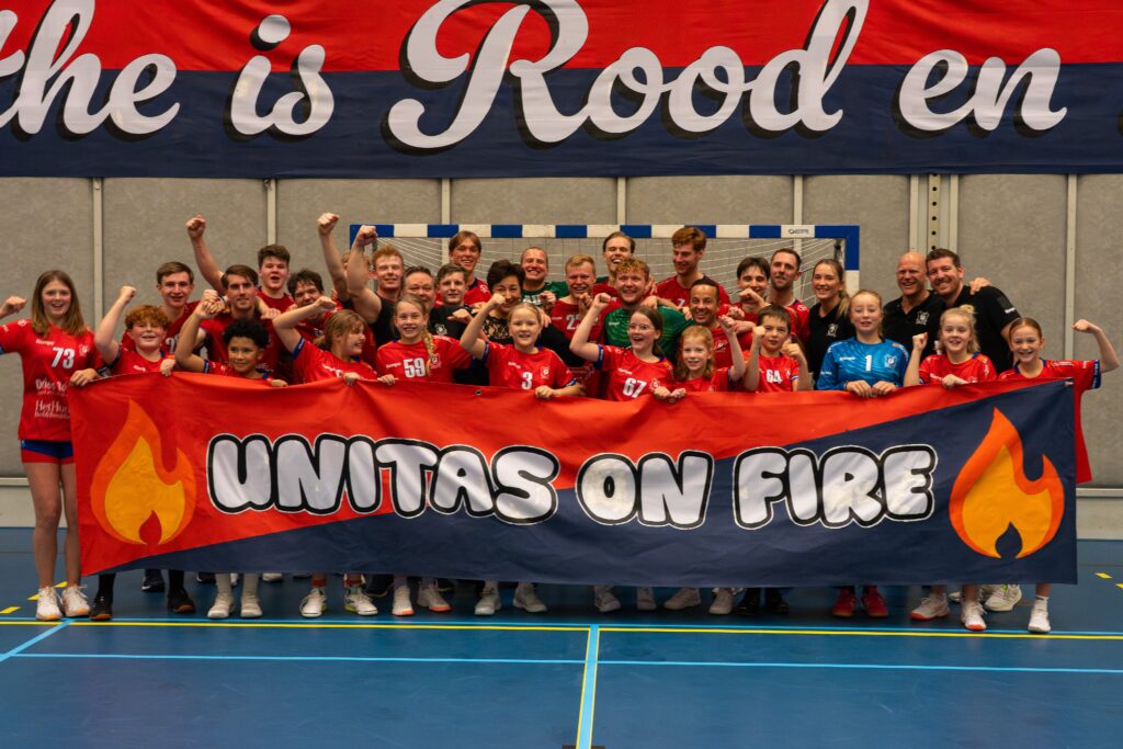 Het jongensboek van De Lange Natuursteen/Unitas krijgt maar geen einde. Waar de promotie naar de eredivisie vorig seizoen nog voelde als een onverwacht hoofdstuk, staat de ploeg van coach Henk Smeenge na tien speelronden gewoon aan kop. En opnieuw vulde de Boerhoorn Arena zich tot de nok — dit keer met extra veel sfeer, want voorafgaand aan de wedstrijd organiseerde Unitas een gezellige avond voor alle sponsoren.