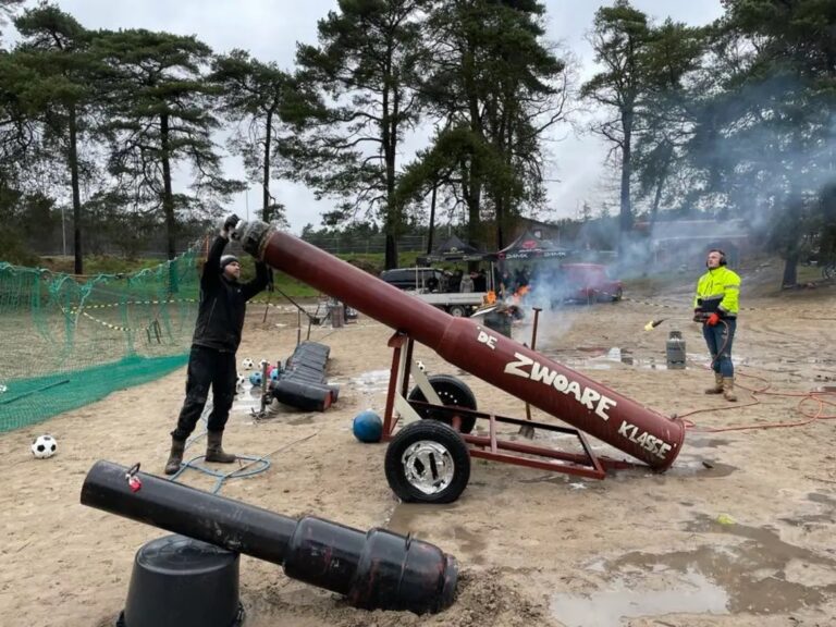 Oudjaarsdag knalt het weer op de zandverstuiving: carbid schieten met bier en broodjes hamburger!