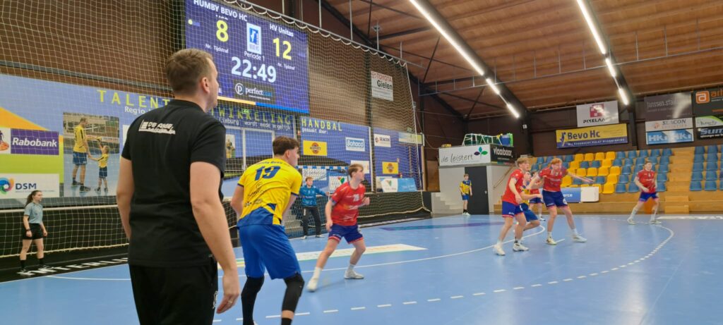 In de rust werd erop gehamerd om vooral de focus te bewaren en die energie en beleving in de dekking te houden. De start van Unitas in de 2e helft was veelbelovend, want in amper 3 minuten tijd vlogen er 4 doelpunten om de oren van de Panninger sluitpost (9 – 19). De coach van BEVO kon niet anders dan zijn time-out kaart te gebruiken. Na hervatting van de wedstrijd werden de organisatorische aanwijzingen duidelijk. Met mandekking en een ander aanvalsplan trachtte BEVO het spel van Unitas te ontregelen. Coach Henk Smeenge reageerde daarop met een 7 vs 6. De man meer situatie zorgde voor enkele fraaie doelpunten van Bart Lensen. Unitas leed bijna geen balverlies en incasseerde slechts 1 tegendoelpunt vanuit de 7 vs 6 vanwege een onderschepte boogbal van Nawid Karimi-Zand naar cirkelspeler Tinne ter Maat. De mandekking werd gelukkig snel daarna opgeheven. De aanvallende omzetting van BEVO pakte eerst wel goed uit. De Panningse cirkelspeler kon een aantal keren worden bediend en BEVO leek tot aan de 50ste minuut een beetje dichterbij te kruipen (19 – 25). Unitas had de aanvallende tactiek echter snel doorzien. Het verdedigende middenblok van Unitas, met een uitblinkende Leon Smeenge voorop, wist in de resterende tijd er voor te zorgen dat de scoringsdrift werd gestopt. Met nog 10 minuten spelen en een foutloze Mathijs Rogier Meijer als vervanger voor Jarno Paasman werd nog een paar keer de break-out ingezet. De onstuimige talenten probeerden er wel met man en macht weer voor te komen maar Bart Mik, Chris Schutter, Bram Schutrup en power-house Nawid Karimi-Zand waren te snel. Het leverde af en toe wel gevaarlijke situaties op, maar gelukkig liep het allemaal goed af.