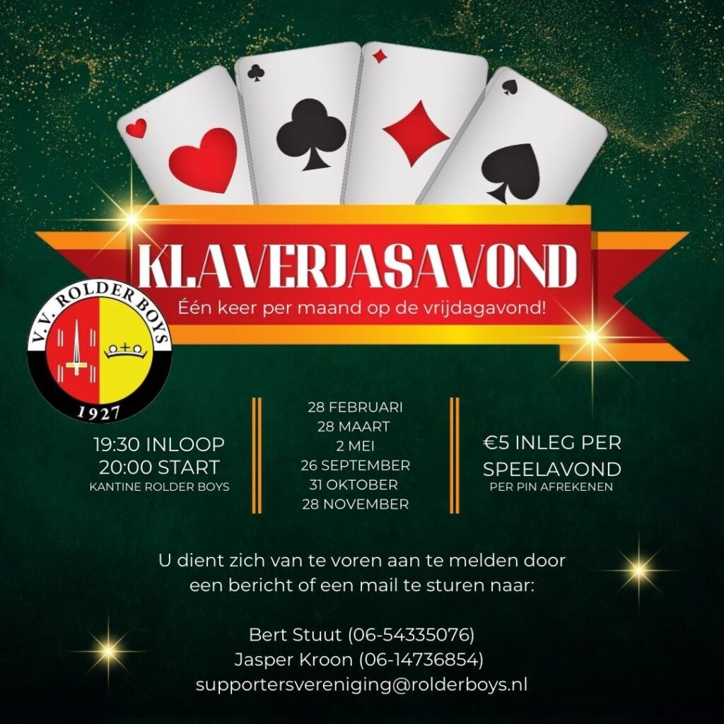 Jarenlang werd er op de vrijdagavonden bij Rolder Boys fanatiek geklaverjast, maar de traditie raakte wat in de vergetelheid. De hernieuwde belangstelling onder leden en supporters was aanleiding om het weer op te pakken.