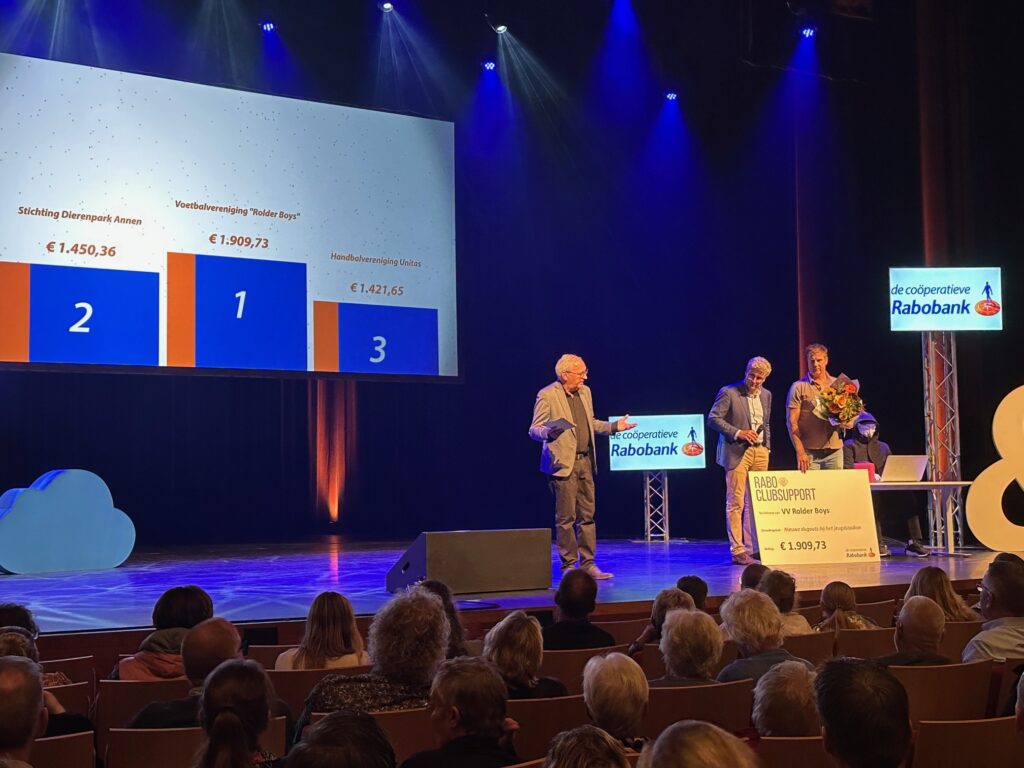 In een volle zaal van De Nieuwe Kolk in Assen vond dinsdagavond de finaleavond van Rabobank ClubSupport 2025 plaats. Clubs, verenigingen en stichtingen uit de hele regio Assen en Noord-Drenthe kwamen samen om hun cheque in ontvangst te nemen en ervaringen te delen. Het programma stond dit jaar niet alleen in het teken van feest en waardering, maar ook van digitale weerbaarheid binnen het verenigingsleven.