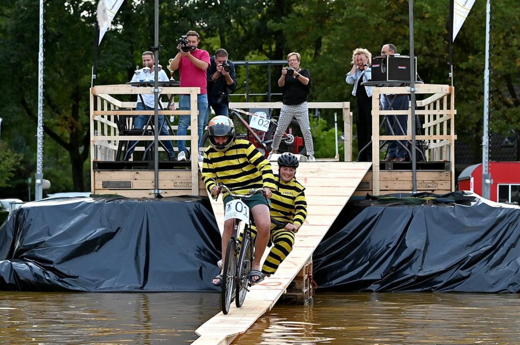 De deelnemers hadden zich flink uitgeleefd. Velen kwamen met zelfopgemaakte fietsen, vaak kleurrijk versierd en voorzien van grappige details. Een rijdende badkuip, een tuktuk, koeien, noem maar op. Vanaf het ‘rennerskwartier’ waar de keuring plaatsvond, werden de creaties via de speciaal ingerichte fietslift naar het startpunt gebracht.