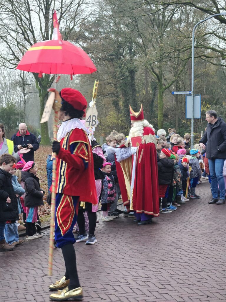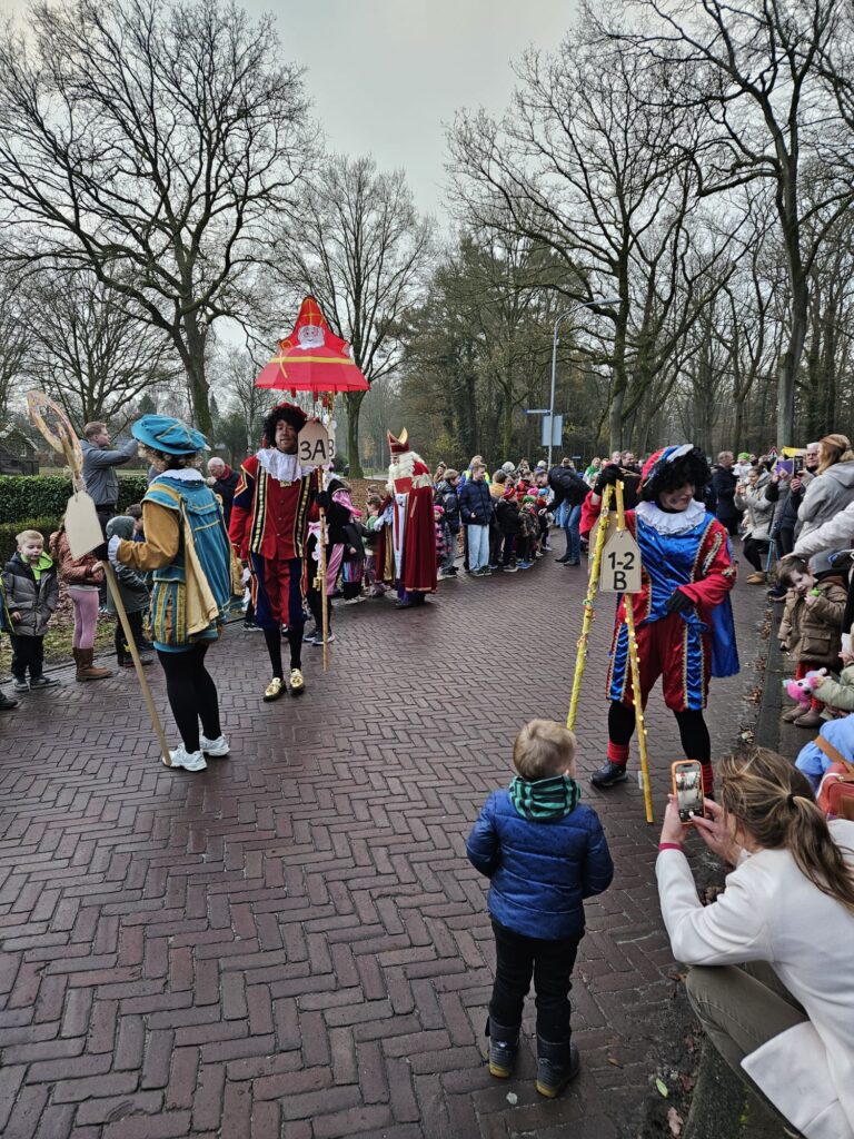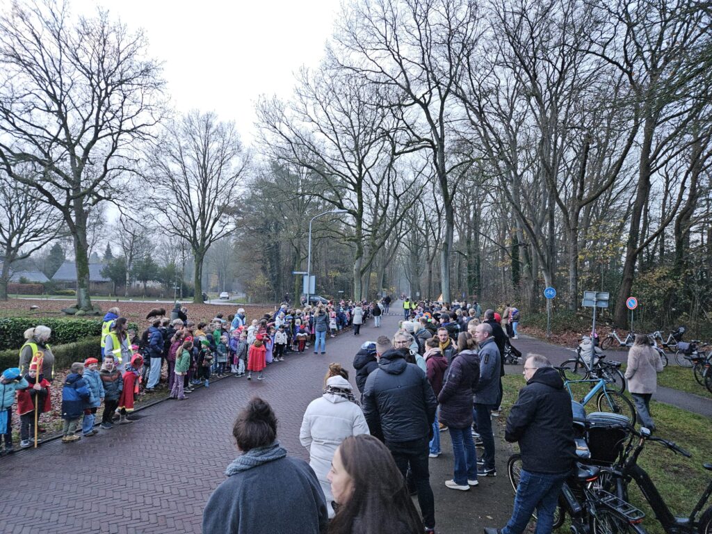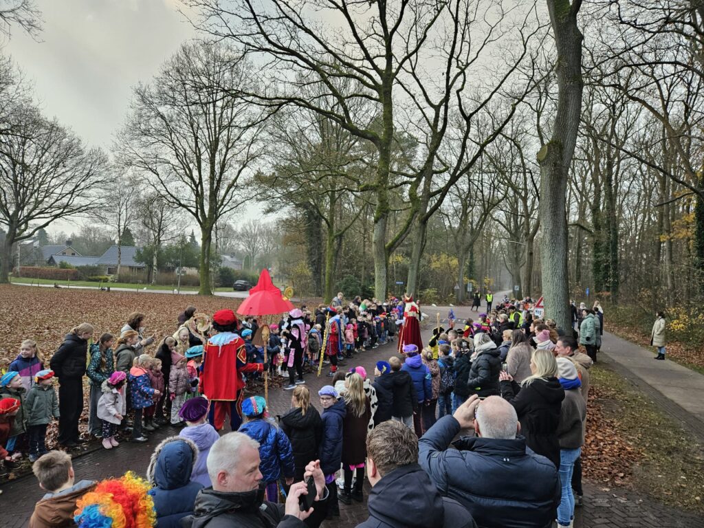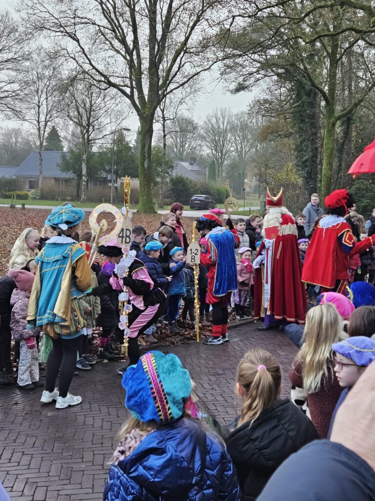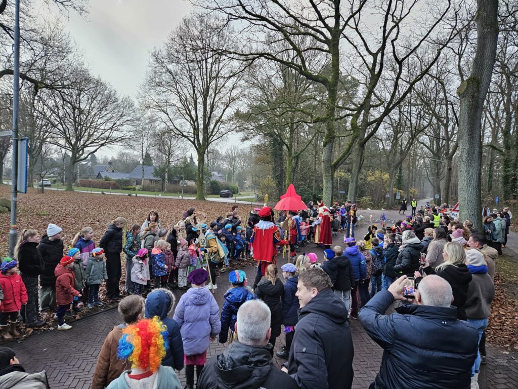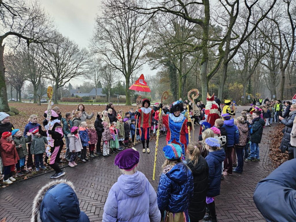 Vandaag was het weer een prachtig gezicht in Rolde: Sinterklaas is aangekomen op de Jan Thiesschool. Al vroeg stonden de kinderen — velen verkleed als mini-Sint of vrolijke Piet — enthousiast te wachten op de goedheiligman. Nieuwsgierige ouders ontbraken ook niet! De stoet kwam, zoals alle jaren, via de Nijlandersstraat de school tegemoet.