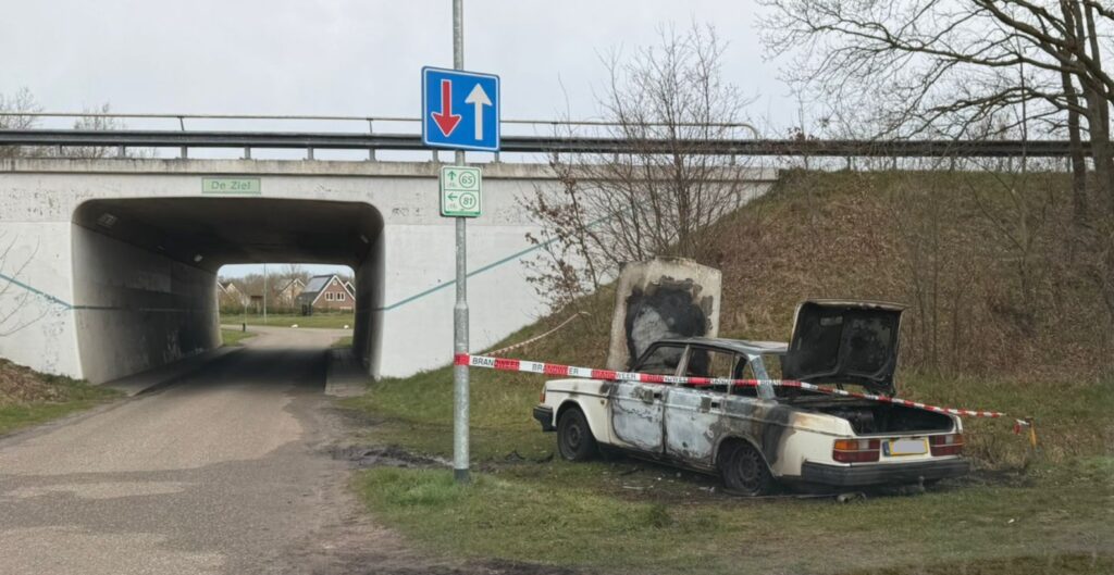 Een klassieke Volvo 240 van een inwoner uit Rolde is gisteravond volledig uitgebrand bij het tunneltje aan De Ziel. Rond 23.30 uur kreeg de brandweer van Rolde de melding van de autobrand en rukte met spoed uit.